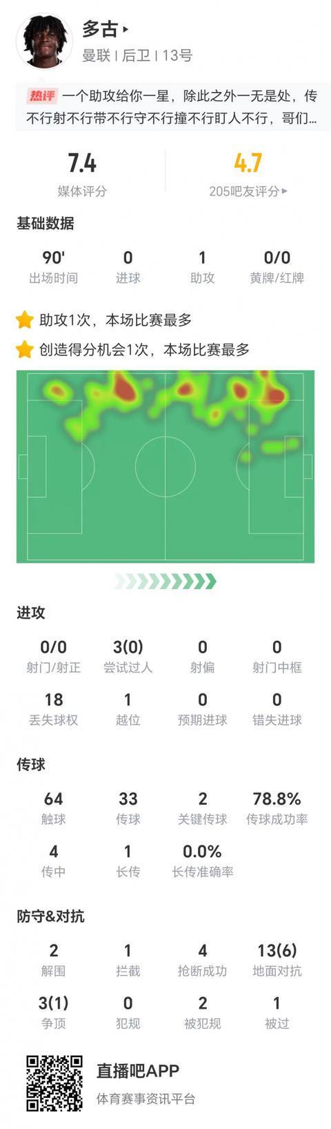 多古全场数据:零射门零成功过人,两次关键传球1次助攻,4次传中