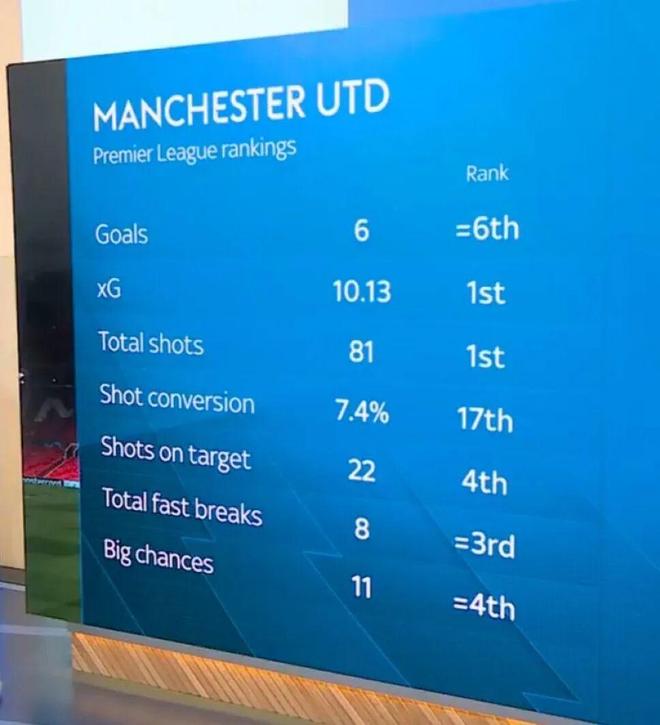 曼联多项进攻数据名列前茅,但进球转化率第17