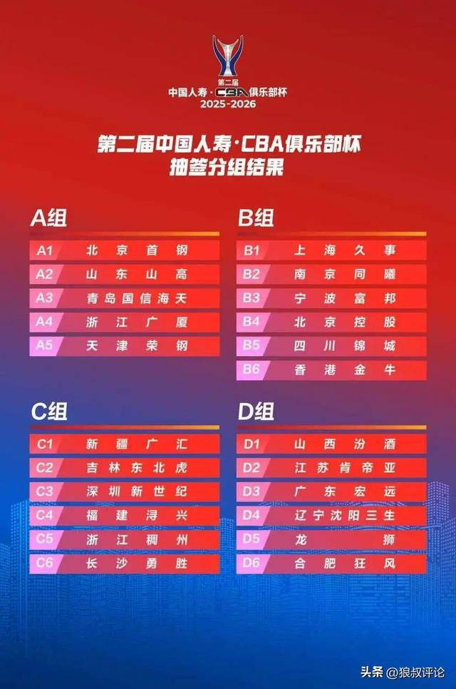 B组:上海,南京,宁波,北控,四川,香港这一组对决同样不乏看点,香港金牛作为NBL冠军,他和宁波,四川这些球队的差距有多大,相信是很多球迷愿意看到的局面,特别是一旦NBL球队击败了这些上个赛季靠后的球队,涉及到扩军,升降级相关的话题,恐也会引爆舆论。上海作为卫冕冠军,他们能否顺利完成出线,南京随着林葳的离队是否能保持足够强劲的综合实力,北控完成换帅后,杯赛能否成为首个自我正名的赛事。四川男篮经历了险些无法注册的尴尬后,他们将会以什么样的阵容出现在正规比赛。
