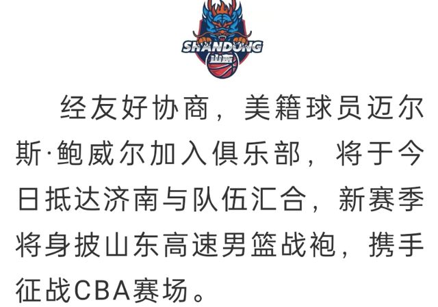 正式官宣!CBA顶级外援加盟山东男篮,携手高诗岩,邱彪冲击前四