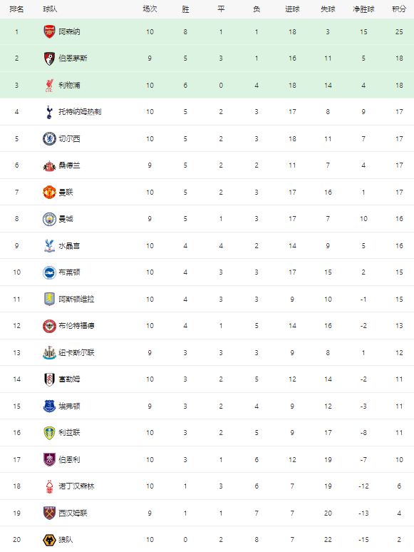 - 英超 | 随着切尔西10热刺,阿森纳20,英超最新积分榜:利物浦20升第3
