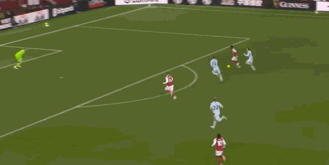 伤停补时阶段,梅里诺送出直塞,萨卡闪开角度左脚射门,凯莱赫虽然扑到皮球但无力阻止皮球飞入球门。阿森纳锁定胜局。