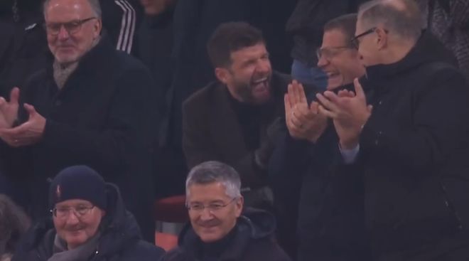 比赛的第28分钟,凯恩禁区右肋似传似射,格纳布里底线回传,无人盯防的卡尔推射破门,1比0!在卡尔打破僵局之后,看台观战的穆勒与拜仁管理层喜笑颜开。