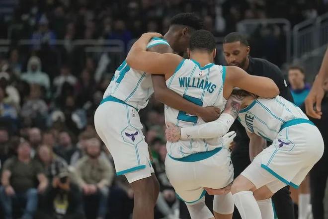 还有一个黄蜂球员不得不提,他就是格兰特-威廉姆斯。2024年11月24日,格威遭遇右膝前十字韧带(ACL)撕裂,整个2025年一场比赛都没打。伤停413天,今天格威正式复出:10投3中拿到9分8篮板,正负值+31全队第四高。
