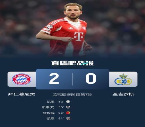 拜仁二零击败圣吉罗斯凯恩不仅进球还送点金玟哉则是拿到红牌的明星_欧冠直播