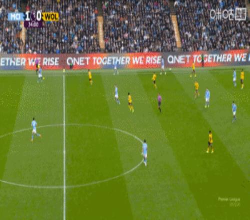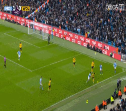 上半场伤停补时4分钟,半场结束,曼城暂2-0狼队。